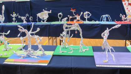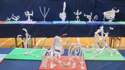 キラキラの木ってどんな木だろう?とイメージを広げながら、針金とアルミホイルで表しました。ドスンと太い木、スッと高い木、にょきにょき、カクカクした枝…ステキなキラキラの木がたくさん生まれました。
