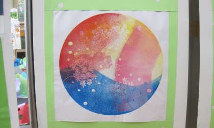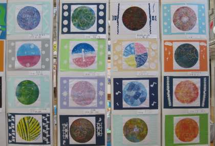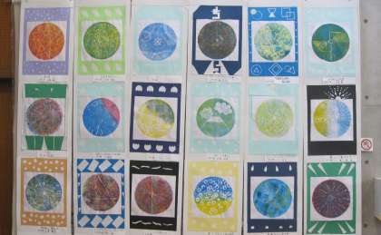 【展覧会】 6年生「重なるイロイロスチレン版画」