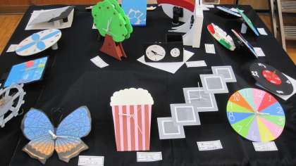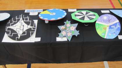 材料のベニヤ板を加工して、時計をつくりました。これまで学んだことを活用して、「自分ならどう表すか」を追求しました。うまくいかない時は、友達と相談したり、調べたり、やり直したり…。一人一人が試行錯誤してつくり上げた時計は、未来へ向かって時を刻んでいくでしょう。表示された時刻は、子どもたち一人一人がこだわりをもって設定しました。