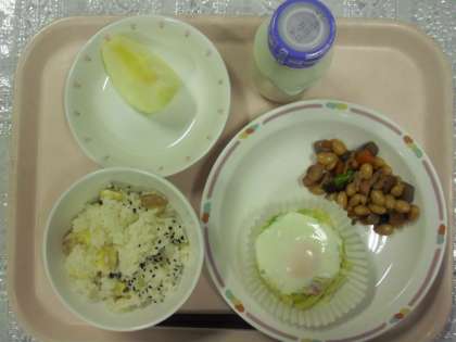 今日の給食は 公開日 2011/10/07 更新日 2011/10/07 できごと 今日のメニューは、栗ご飯、巣ごもりの卵、五目豆、りんご、牛乳でした。今日は、十三夜を考えた給食でした。 いいね(0) 学校生活