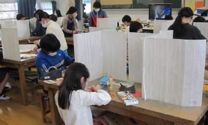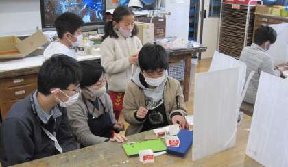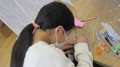 「パックパク」動く仕組みをいかして制作しています。細かい作業に集中して取り組んでいました。