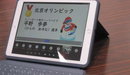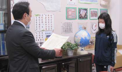 学校長からは、オリンピック選手の活躍や感染症対策について、イラストの画面を共有しながらお話がありました。その後で、『社会を明るくする運動 作文コンテスト』で優秀賞に輝いた児童の表彰を行いました。