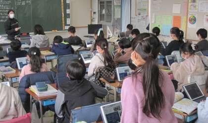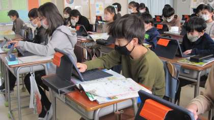 国土の自然環境は、私たちの生活とどのようなかかわりがあるか、資料をもとに調べました。「よいところ」「問題点」「関心、疑問」の観点で整理し、意見交換しました。