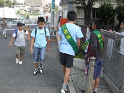 代表委員会の取り組みとして、「スマイルキャンペーン」が始まりました。代表委員会の児童が、朝、東門、西門で、「あいさつ」をして、登校してくるじどうに働き掛け、あいさつの定着を図っています。