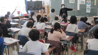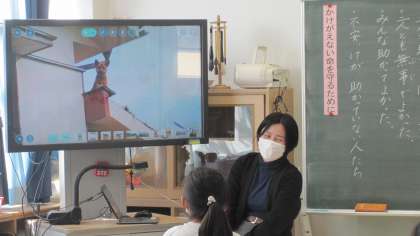 阪神・淡路大震災を扱った教材「助かった命」を読み、危険を顧みず他者の救命に向かった父の行動に対する登場人物の思いを想像しました。説話は、担任の実体験に基づいたものだったので、子どもたちの心に響いていました。飼い犬の命が助かった写真を見て、子どもたちはほっとして、「よかった〜!」と言って拍手をしていました。