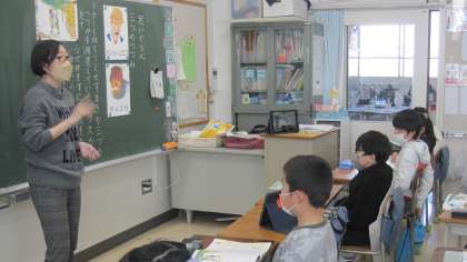 「思いやりの心」がテーマの教材「三つのつつみ」を読み、人のために休むことなく働いている登場人物「デルスウ」の行動に触れ、もう一人の登場人物の立場で感じたことを発表し合いました。自分が人のために行動できた経験について振り返り、学習シートに書きました。