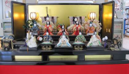 地域の方からご寄贈いただいた「ひな人形」を、毎年この時期に図書館前に飾っています。子どもたちは季節の行事を楽しんでいます。