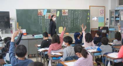 教材『あいさつが きらいな王さま』を読み、あいさつの良さについて考えました。子どもたちからは、「元気が出る、みんなを笑顔に、幸せ、うれしい気持ちを伝える・・・」などたくさんの意見が出されました。