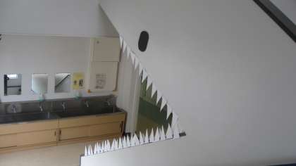 今日紹介した作品は、6年1組の子どもたちの作品です。見つけることができなかった作品やまだ途中の作品もあるそうです。これから、6年2組の子どもたちの作品も飾っていきます。