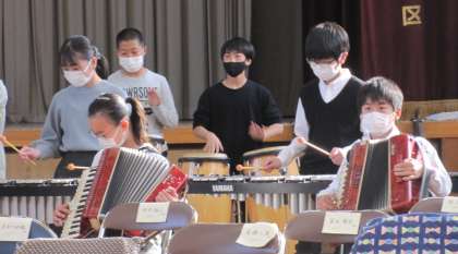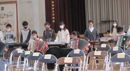 6年生からの感謝の言葉と演奏のプレゼントです。6年1組『情熱大陸』演奏の迫力は、さらにパワーアップしていました。