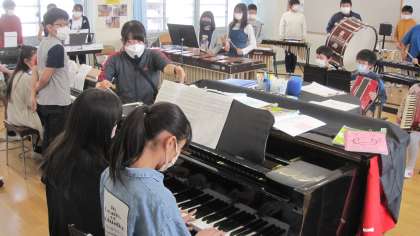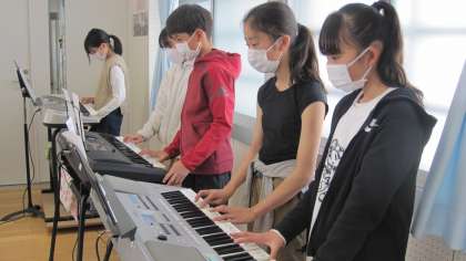 卒業式の当日は参列することができないので、演奏を事前に録音して流します。3クラスの演奏を編集してつなぎます。本日も数テイク録音しました。