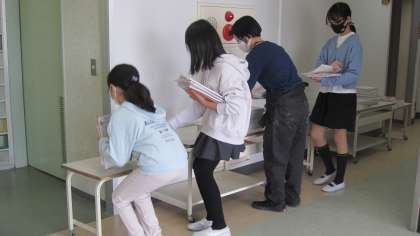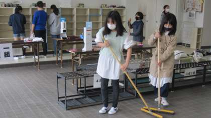教科書の確認をしたり、昇降口の清掃や靴箱の準備をしたりしました。