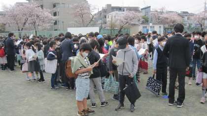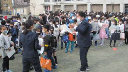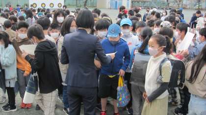 旧担任から新しいクラスのメンバー表が配られました。プリントを食い入るように見ていました。