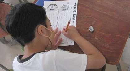 1学期のめあてを立て、学習面、生活面に分けてカードに記入しました。