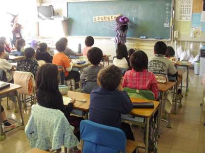 2・3年生が学びタイムで「英語活動」を、ボランティアの保護者の方と共に行いました。