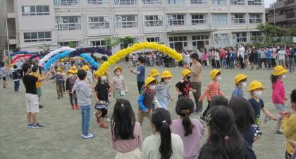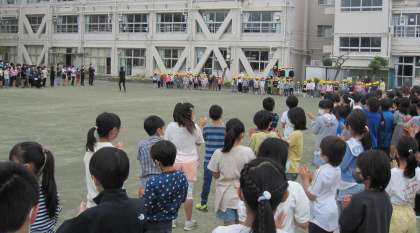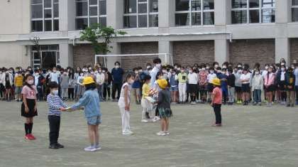 2年生が1年生の時に育てたアサガオの種を1年生にプレゼントしました。上級生は1年生の言葉を聞き、温かく拍手をして迎えました。