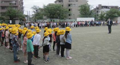 雨で何度も延期になった1年生を迎える会。昨年度の代表委員が担当し、練習を重ねてきました。会の直前もリハーサルを繰り返していました。