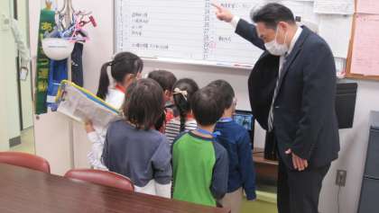 2年生が学校の様々な場所を取材し、学んだことを1年生に伝えました。まとめた原稿を見ながら、少し緊張して1年生に一生懸命伝えていました。