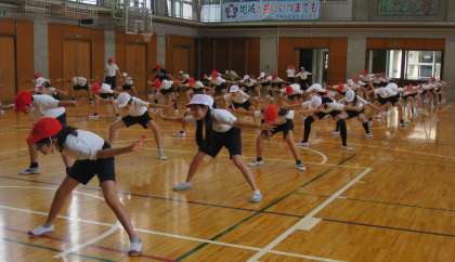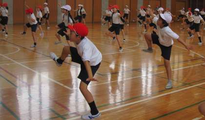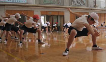 運動発表会で披露する演技の練習を行いました。今日は、オープニングの動きを教員の動きを手本にして踊りました。 取り組む姿勢は真剣で、素晴らしいです。