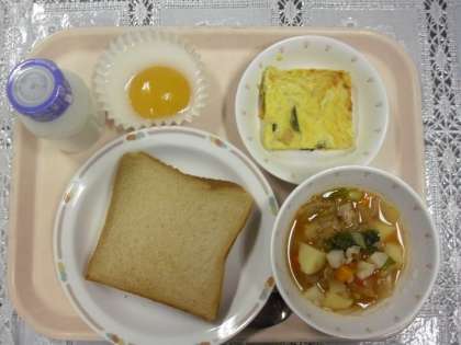 昨日の給食は! 公開日 2011/11/01 更新日 2011/11/01 できごと 昨日のメニューは、黒糖パン、かぼちゃ入りオムレツ、ミネストローネ、おかしな目玉焼き、牛乳でした。 いいね(0) 学校生活