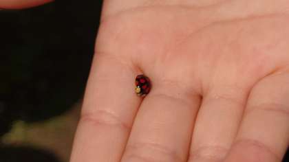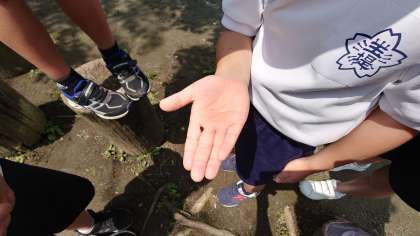 休み時間に、校庭の木にとまっていたテントウムシを見つけた子どもがいました。(5月18日)