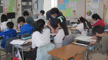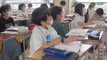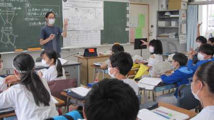 『対称な図形』について学習しています。台形、平行四辺形、ひし形、長方形、正方形が線対称な図形か、点対称な図形かを調べていきました。