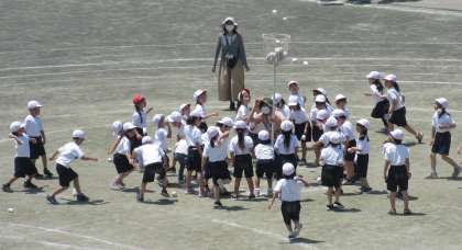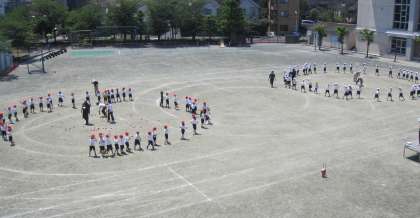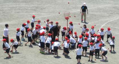 1年生の団体競技は、ダンスと組み合わせて、玉入れを行います。練習から白熱した戦いを繰り広げています。