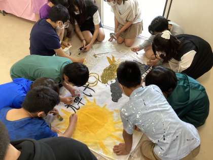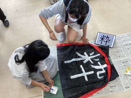 はっぴには、それぞれが一文字を選んで気持ちを込めて書きました。