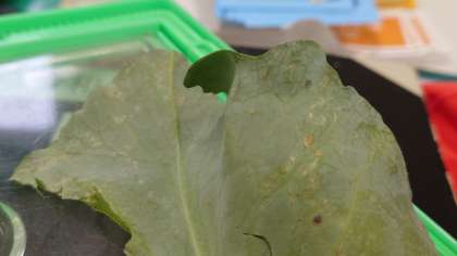 モンシロチョウの新しいたまごを育てています。(5月26日)