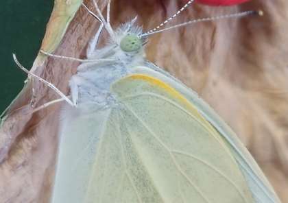 教室にいたモンシロチョウのさなぎが成虫になりました。(5月27日)