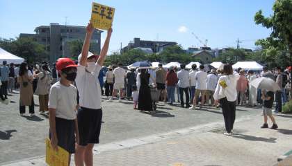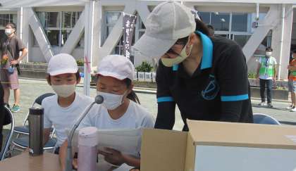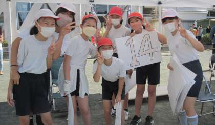 運動発表会を支える係は、6年生が担当しています。礼儀正しくあいさつをして、保護者の皆様を迎えています。