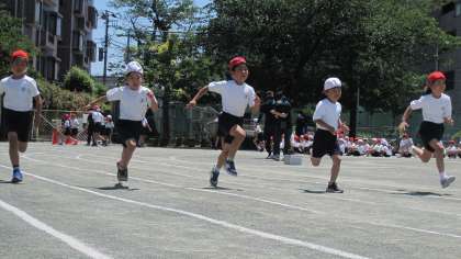【2年生 50m走】力強い走りが印象的です。6年生の応援もうれしいです。