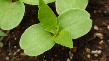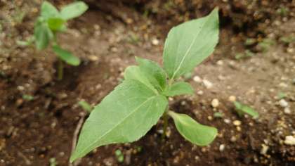 花壇のヒマワリとホウセンカが大きくなってきました。(6月3日)