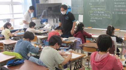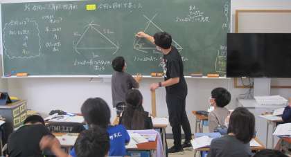 今日の課題は「合同な三角形をかこう」です。定規、コンパス、分度器を使って、試行錯誤しながら合同な三角形のかき方について考えました。