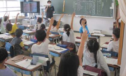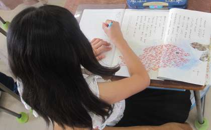 「スイミー」について学習しています。四場面を読み、スイミーと小さな赤い魚たちの様子について考えました。スイミーが叫ぶ場面は動作化をして、盛り上がりました。