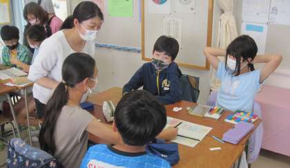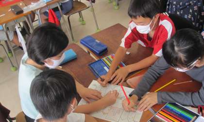今日の課題は「商店街マップを完成させよう」です。いくつかの情報を手掛かりに、班の友達と協力して地図を完成させていきます。
