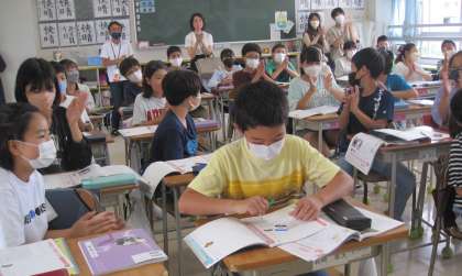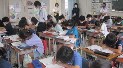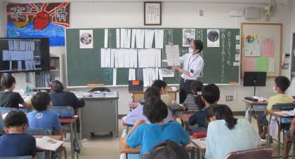 「上村さんの挑戦—被災犬とともに—」について学習しました。東日本大震災の被災犬である「じゃがいも」を災害救助犬にしようと努力する上村さんの話をもとに、諦めずに挑戦することの大切さを考えました。難しい挑戦に挑み続けることはとても難しいですが、どんな気持ちをもてば諦めずにチャレンジし続けられるか話し合いました。