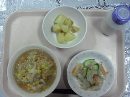 今日の給食は! 公開日 2011/11/11 更新日 2011/11/11 できごと とても寒い日です。今日のメニューは、寒い日にぴったりの「味噌ラーメン、じゃがバター、大根とじゃこのサラダ、牛乳」でした。 いいね(0) 学校生活