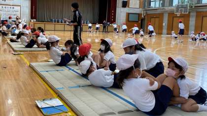天候が不安定な中、体力テスト2日間が無事終了しました。上級生が下級生のお世話をよくしていました。