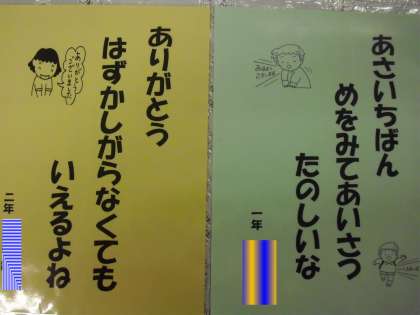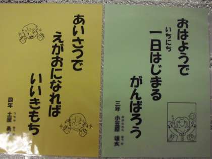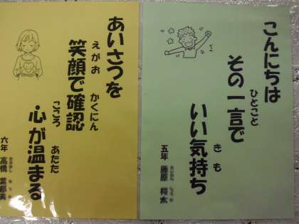 挨拶週間に募集した児童の標語の中から、各学年1つの作品が発表されました。