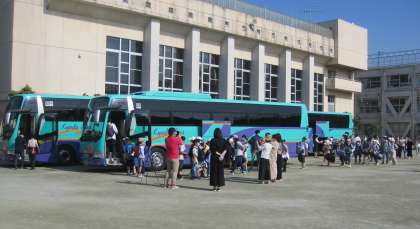 5年生は、今日から1泊2日で群馬県利根郡川場村へ出かけました。先日、涙、涙でお別れをした教育実習生と再開でき、子どもたちは大喜びでした。今回は、補助員としてお世話になります。保護者の皆様には、朝早くからお見送りにいらしていただき、ありがとうございました。