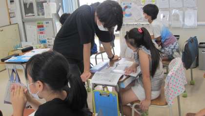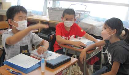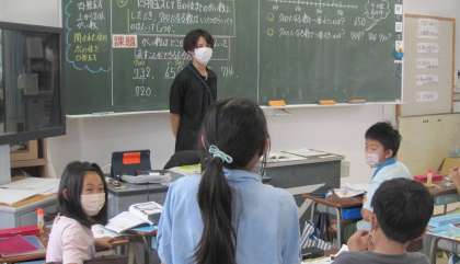 「がい数」について学習しています。四捨五入して百の位までのがい数にしたとき、700になる数は、いくつからいくつの範囲になるか、数直線に表して考えました。