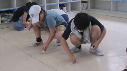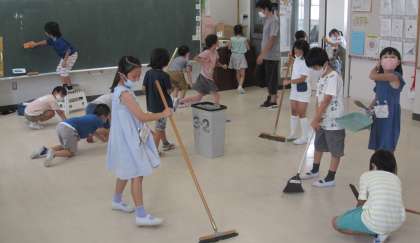 役割を分担して、協力して清掃しました。床をぴかぴかにしたり、紙の分別をしたり、それぞれの仕事に一生懸命でした。写真は、2年生、5年生、6年生です。