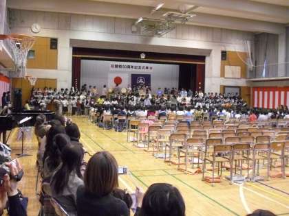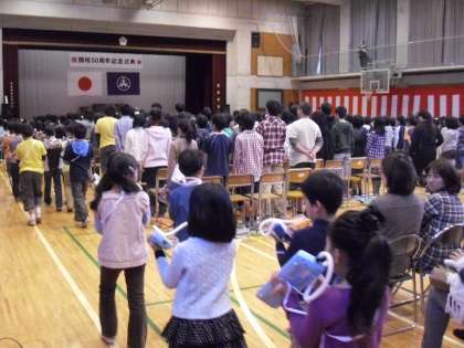 いよいよ明日「開校50周年記念式典・祝賀会」を迎えます。今日、保護者の方に当日ご参会いただけないので、公開リハーサルを行いました。子どもたちも緊張しながらこれまだの練習のおさらいをしました。明日、子どもたちの姿をまた、お知らせします。