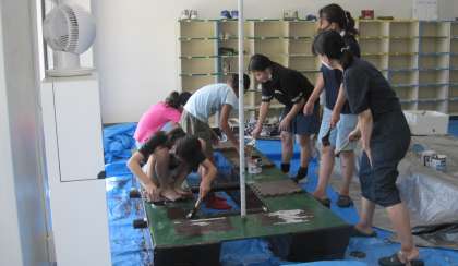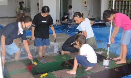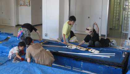 8月28日(日)3年ぶりに開催予定の『アドベンチャーin多摩川』に向けていかだづくりをしています。ご協力いただいているお母様方も一生懸命です。玉堤小チームは、6艇参加します。