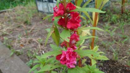 教材園のホウセンカとヒマワリにきれいな花が咲きました。(8月2日間)