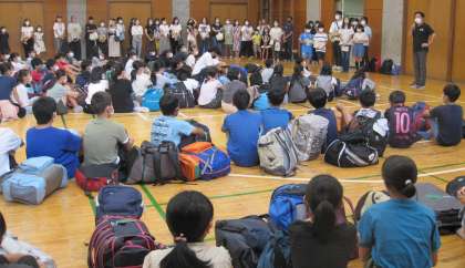 6年生が保護者の皆様に手を振って、2泊3日の日光林間学園に出かけました。最高の思い出を作ってきてください。