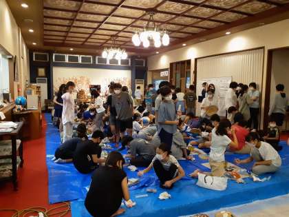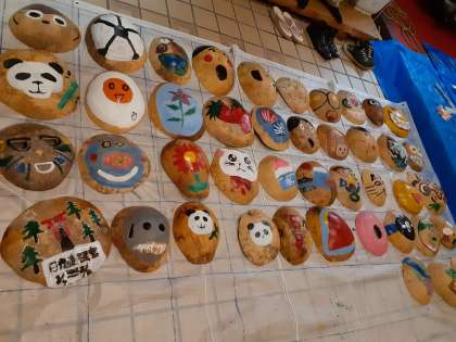 ふくべとは、夕顔の実のことです。夕顔の実を、細長くむいて乾燥させたものが、栃木県の特産品のかんぴょうです。ふくべ細工は、外皮を乾燥させたものを材料として使います。子どもたちの作品をご覧下さい。