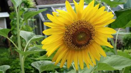 花びらが開きはじめているヒマワリがありました。(8月8日)