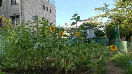 ヒマワリの花が多く咲いてきました。ホウセンカも、色鮮やかな花が咲いています。(8月12日)
